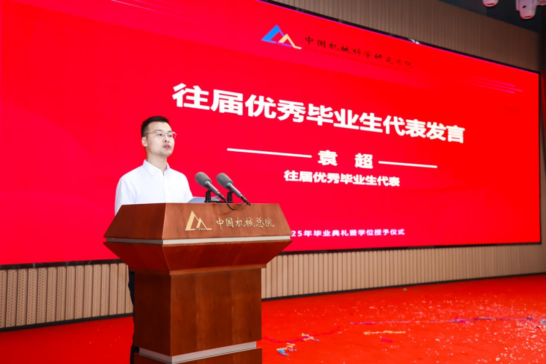 往屆優(yōu)秀畢業(yè)生代表袁超分享留院工作以來的科研經(jīng)歷與成長,鼓勵學(xué)弟學(xué)妹們“以‘敢為人先’為刃,在工業(yè)母機(jī)、工業(yè)軟件的賽道上破浪前行;以‘開拓創(chuàng)新’為炬,為中國制造業(yè)的高質(zhì)量發(fā)展點(diǎn)燃燎原星火?!?/p>